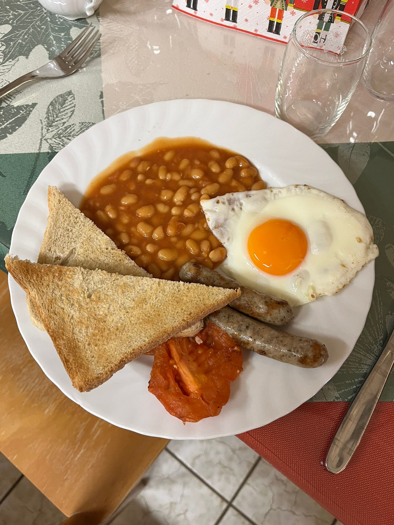 đ „Bacon, baked beans, fried eggs, sausages, tomatoes & toast“ waren dabei – so wie es sich gehört.