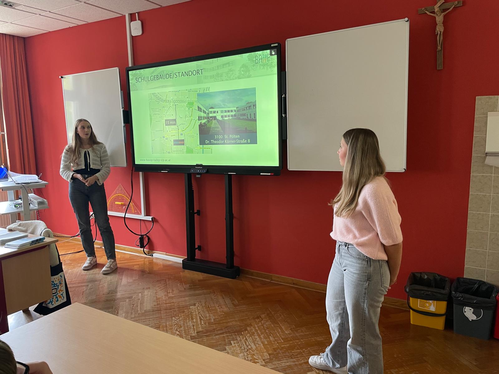 In der 3a und 3b stellten in BBO-Unterricht zwei ehemalige Schülerinnen (Karoline Pay und Tina Müllner) die BASOP/BAfEP St. Pölten vor, die sie dieses Schuljahr mit der Reife- und Diplomprüfung abschließen.