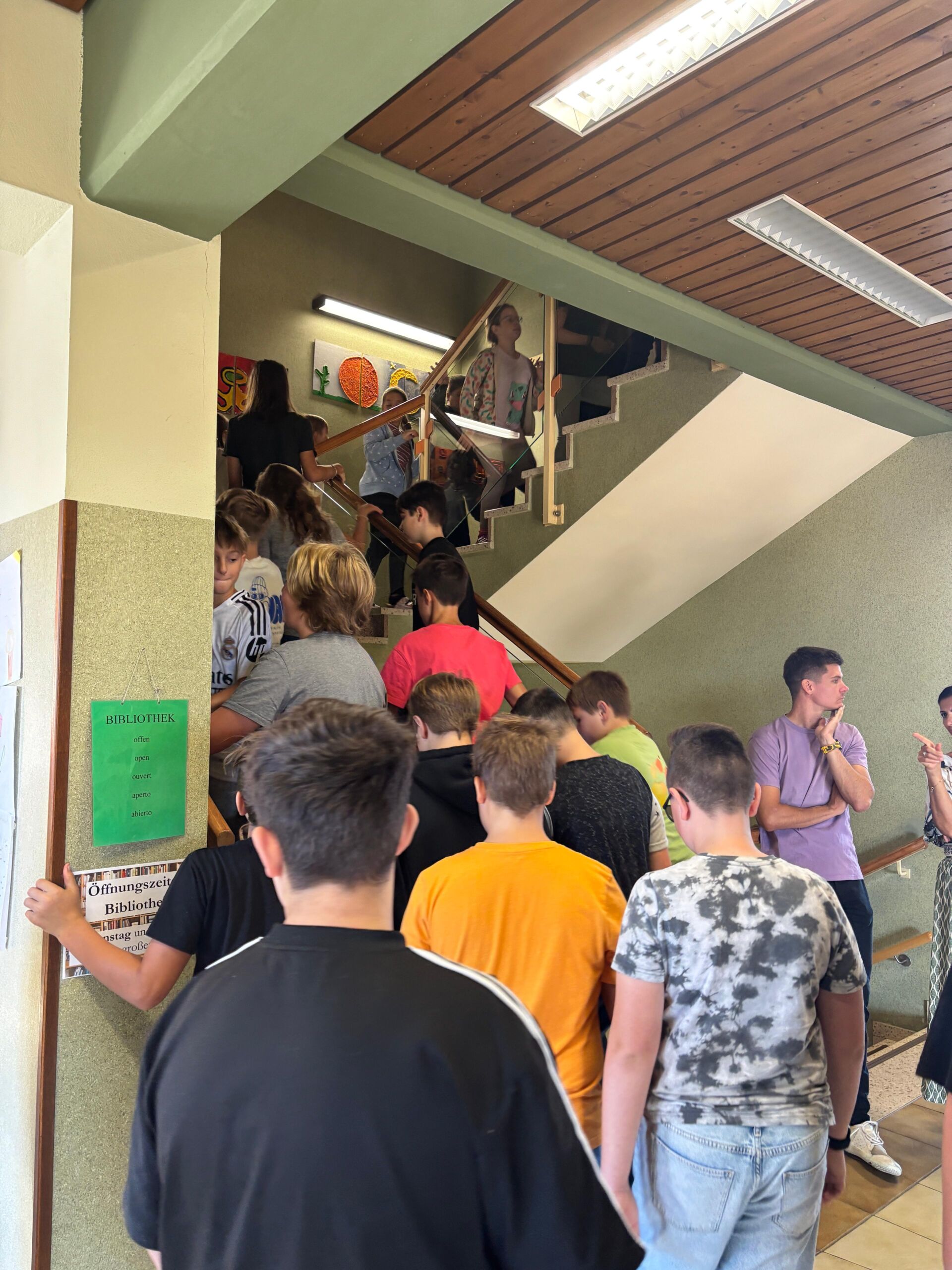 Den 1. und 2. Klassen wurden dabei alle Fluchtwege und Notausgänge gezeigt. Außerdem erklärte der Feuerwehrmann den Schüler*innen genau, wie sie sich im Ernstfall verhalten sollten, damit sich alle Klassen rasch und ohne Panik in Sicherheit bringen können.