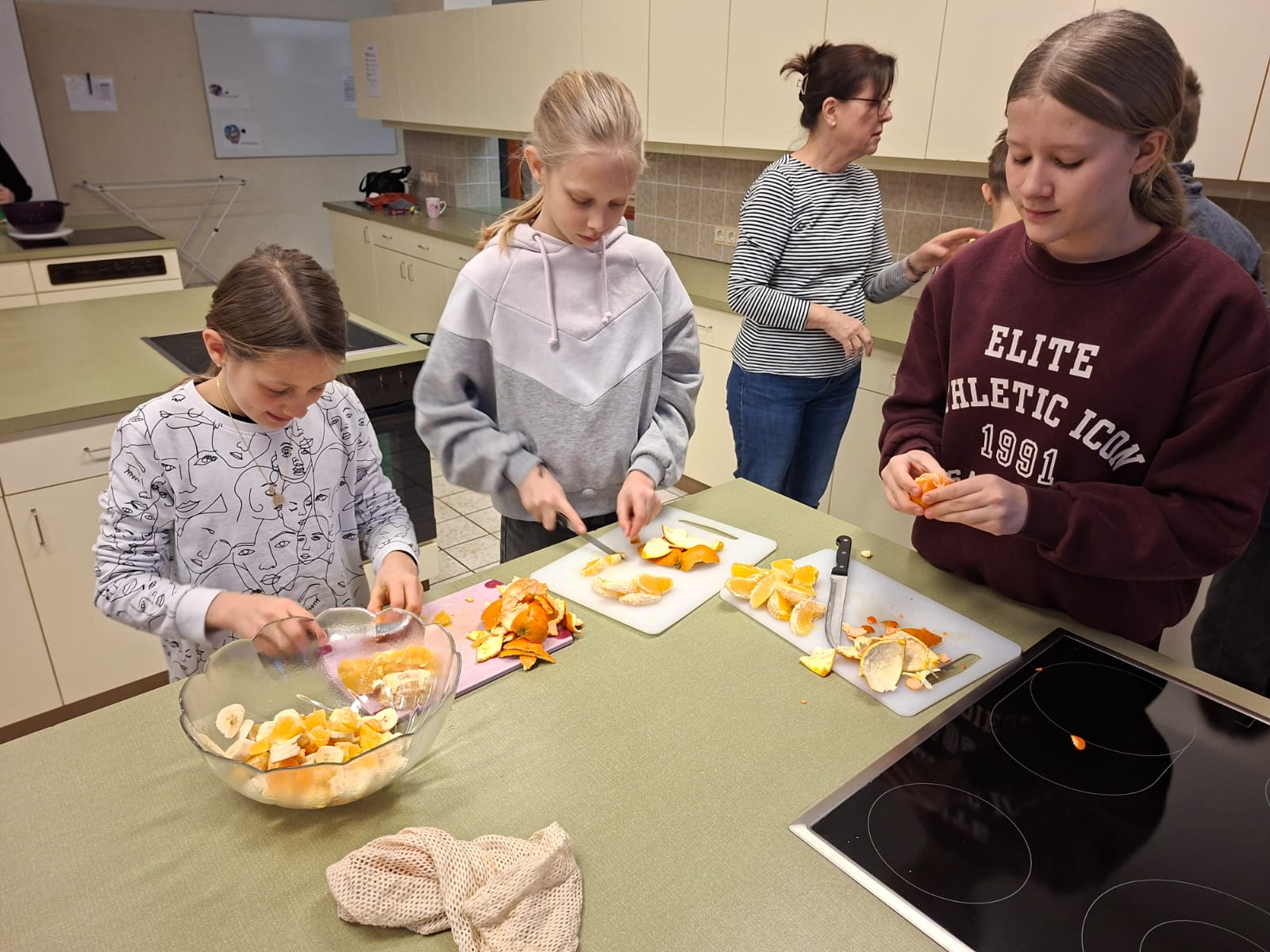 Als Abschluss des Themas Vorgangsbeschreibung haben die beiden AHS Gruppen der 2. Klassen in der Küche gemeinsam Muffins und Obstsalat mit Topfencreme zubereitet. Allen Schülerinnen und Schülern hat es geschmeckt.